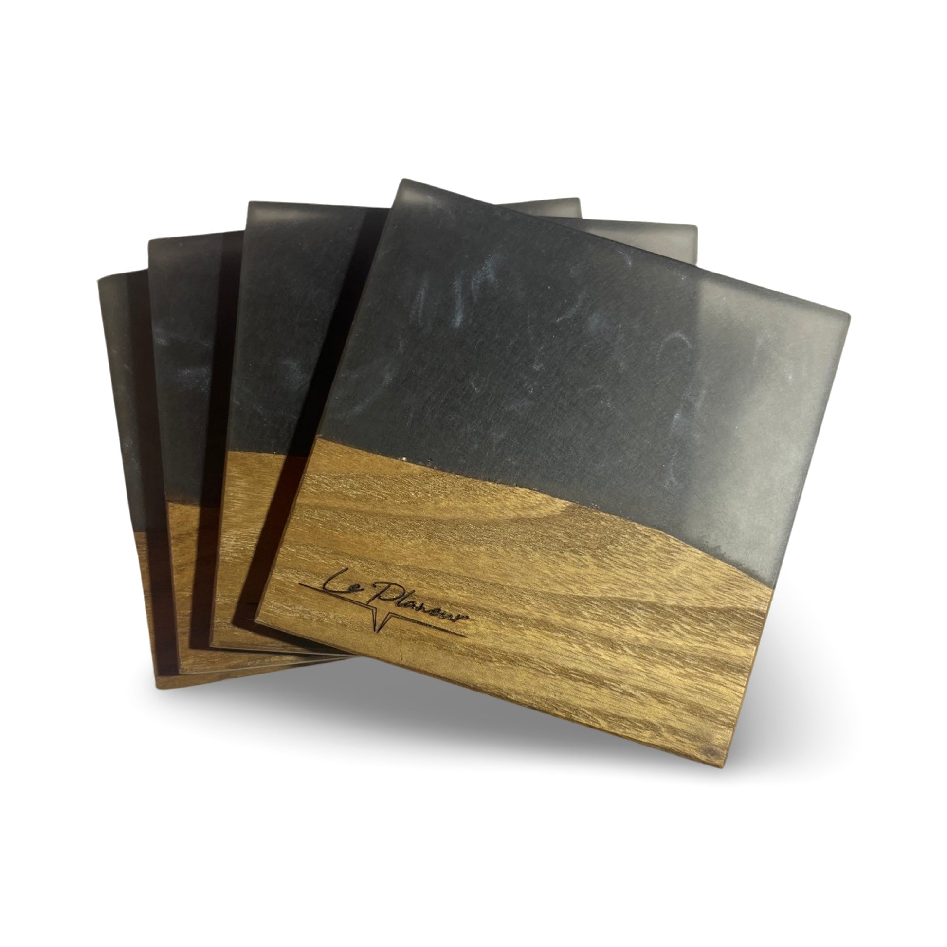 Catalpa and epoxy make up this beautiful coasters.