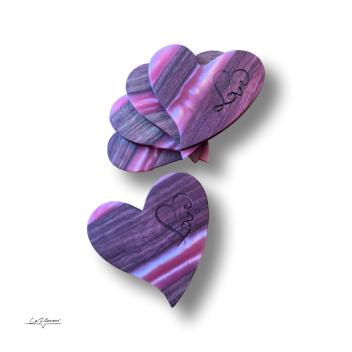 Amaranth (Purple Heart) and epoxy make up this beautiful coasters.