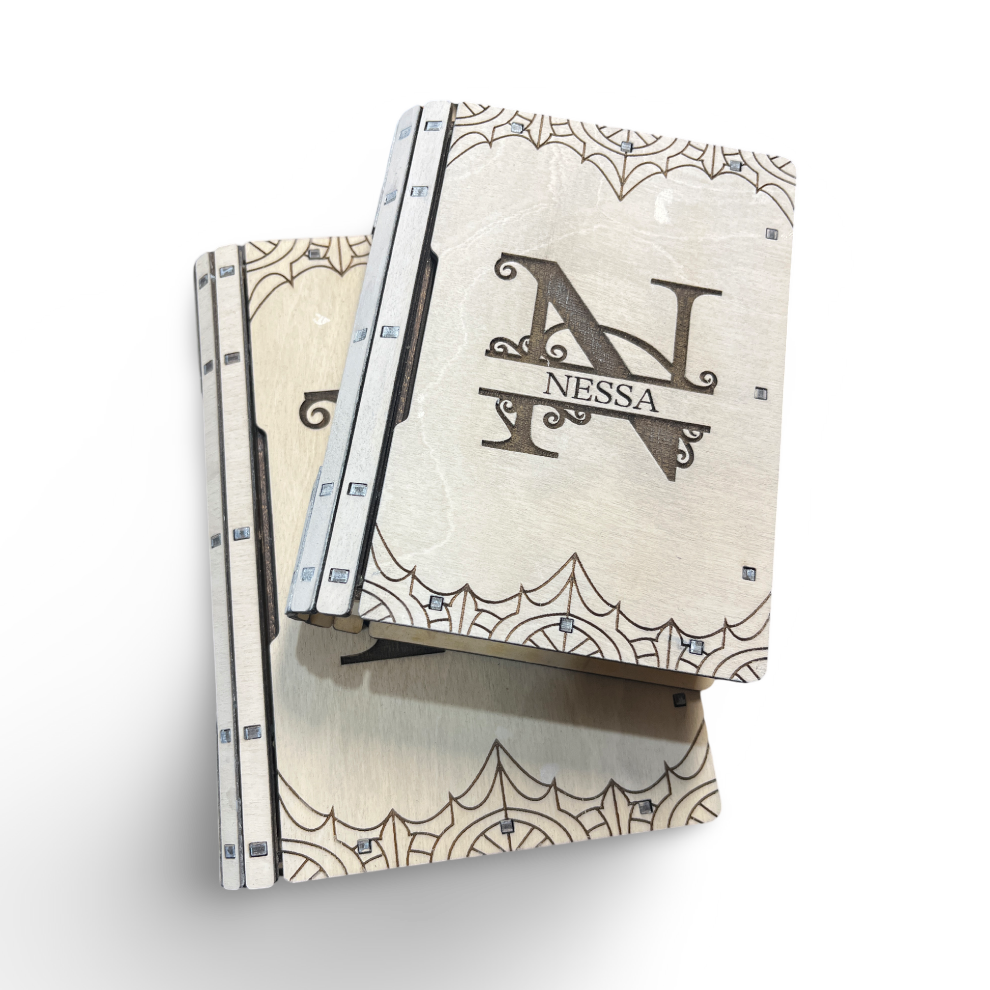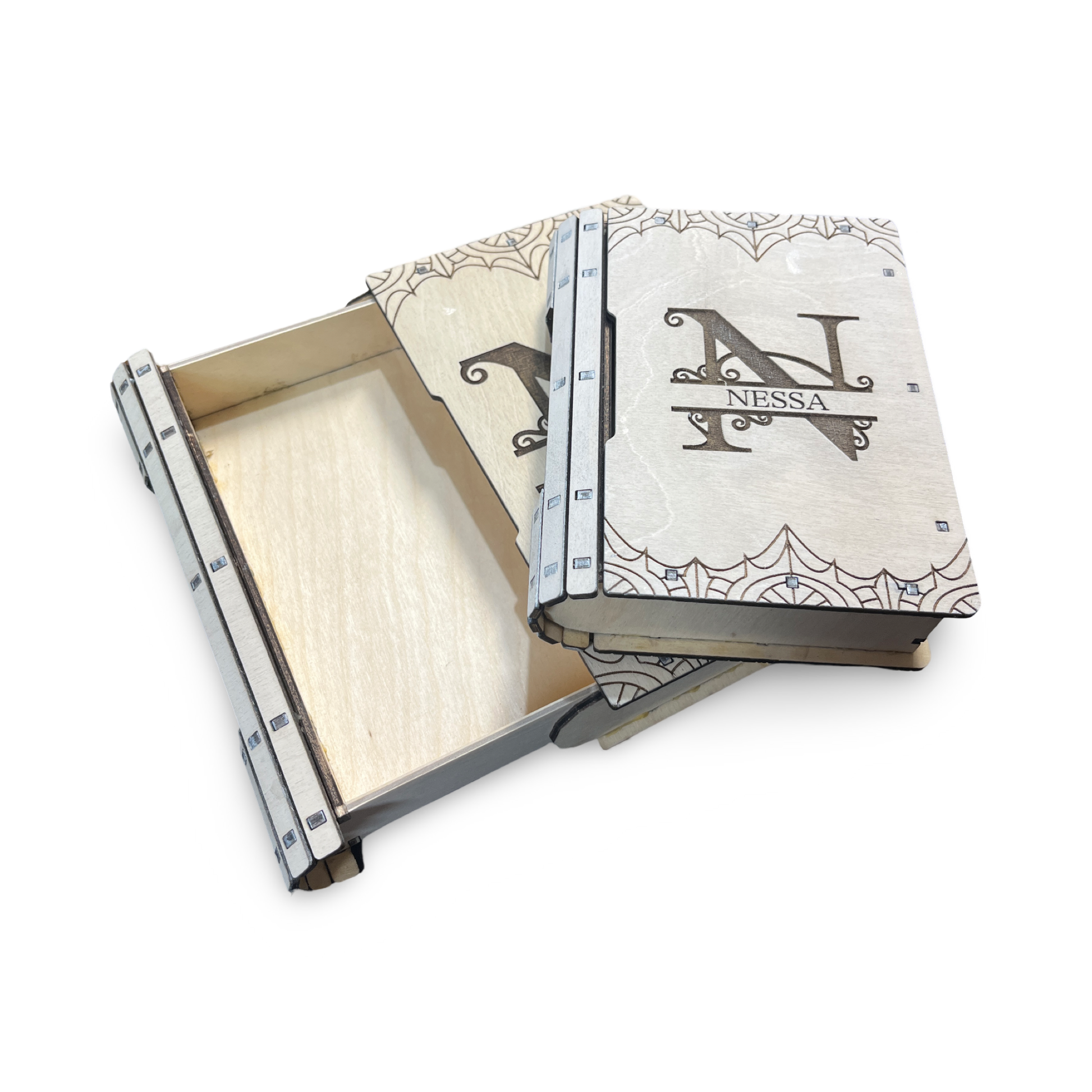 Découvrez le charme de notre Boîte à Glissière en Bois Personnalisée, conçue dans la forme élégante d'un livre. Cette solution de rangement unique ajoute non seulement une touche de sophistication à votre décor, mais offre également une touche personnalisée, en faisant un cadeau parfait pour toute occasion. Fabriquée en bois de haute qualité, la boîte à glissière est idéale pour garder en sécurité et bien organisés vos objets précieux, notes ou petits trésors. Personnalisez-la avec votre nom ou un message spécial pour créer un souvenir mémorable qui sera chéri pendant des années. Élevez votre expérience de cadeau avec ce morceau exquis et fonctionnel.