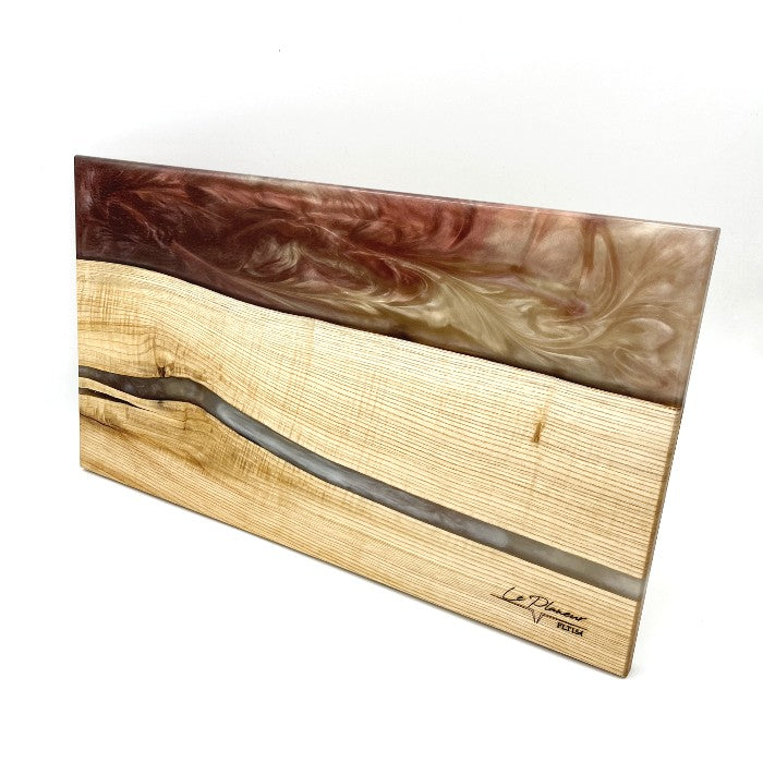 Planche de charcuterie en bois dur et époxy, excellente pour la présentation !