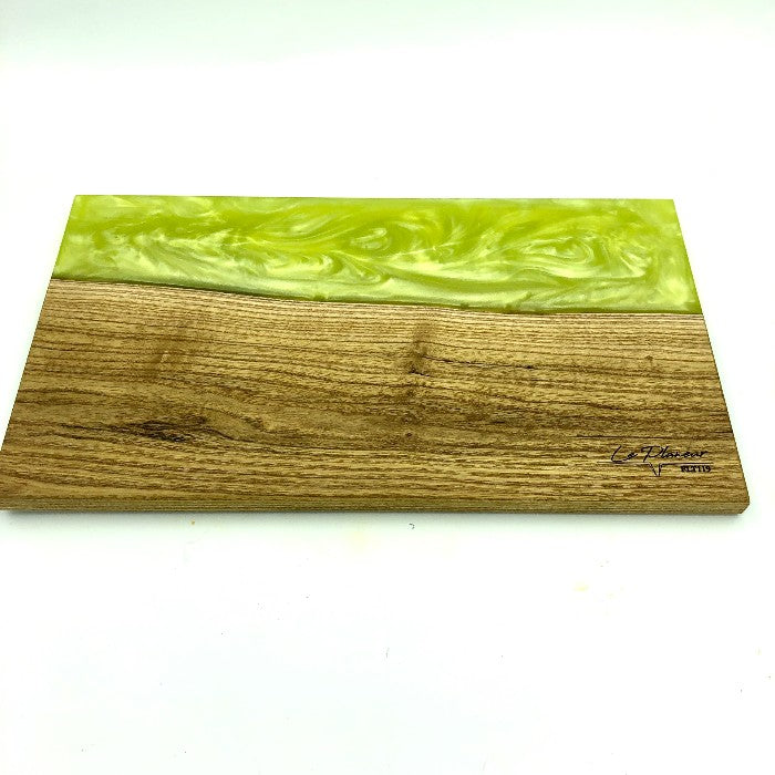 Attention : Les planches avec époxy ne doivent pas être utilisées pour la découpe car le bois n'est pas huilé mais plutôt traité avec un produit de protection. Un couteau peut l'endommager et exposer le bois à la nourriture ainsi que produire des rayures sur l'époxy qui seront difficiles à réparer ou à cacher.
