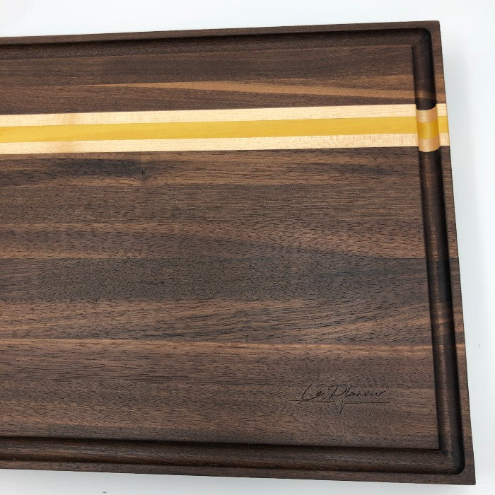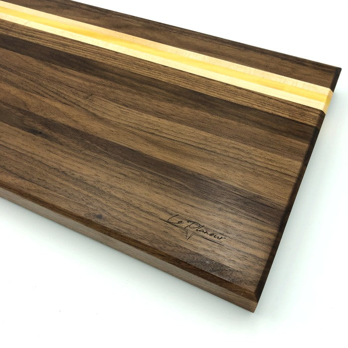 Planche à découper en noyer décorée d'érable et de Pau Amarello.