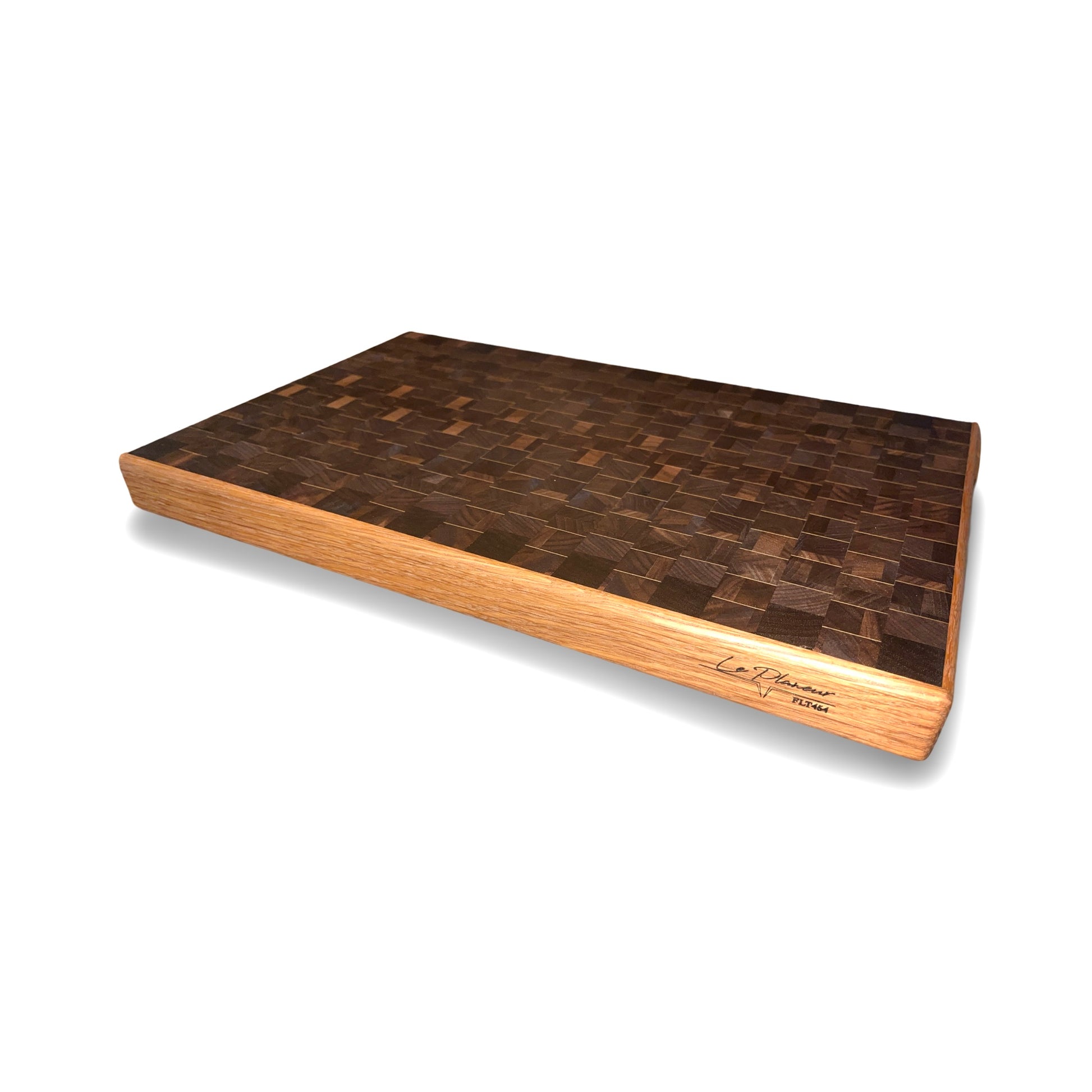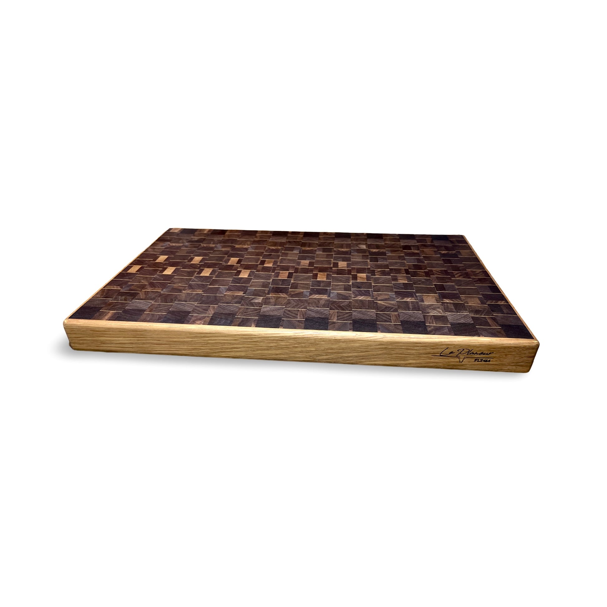 Planche à découper en noyer avec des accents décoratifs d'Érable et Chêne. Parfaitement conçu avec un mélange accrocheur de bois dur pour une durabilité et des performances de coupe supérieures.
