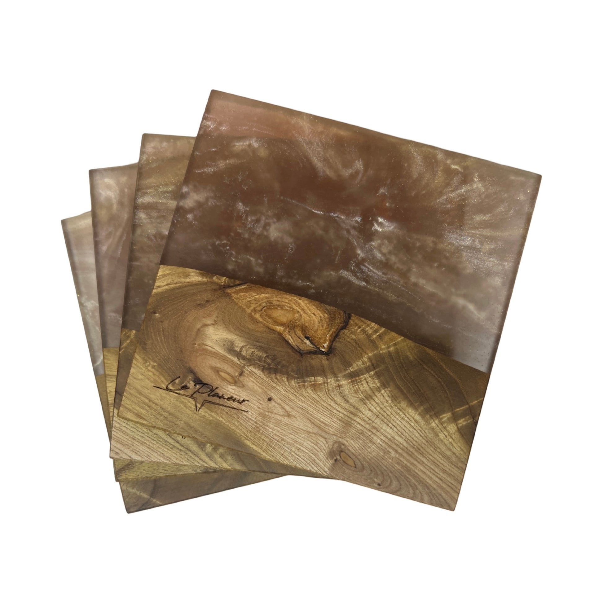 Le noyer et l’époxy composent ces magnifiques sous-verres.