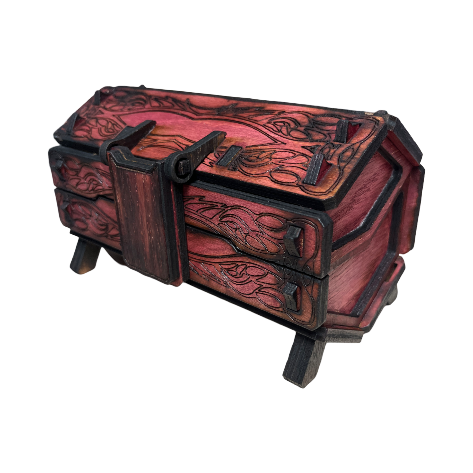 Découvrez notre magnifique Coffre en Bois de Vampire, présentant un design hexagonal découpé au laser. Rangez et exposez vos trésors en toute sécurité avec une touche d'élégance. Parfait pour les collectionneurs et les passionnés de vampires. Déverrouillez les secrets du luxe et du bon goût avec cette pièce exclusive.